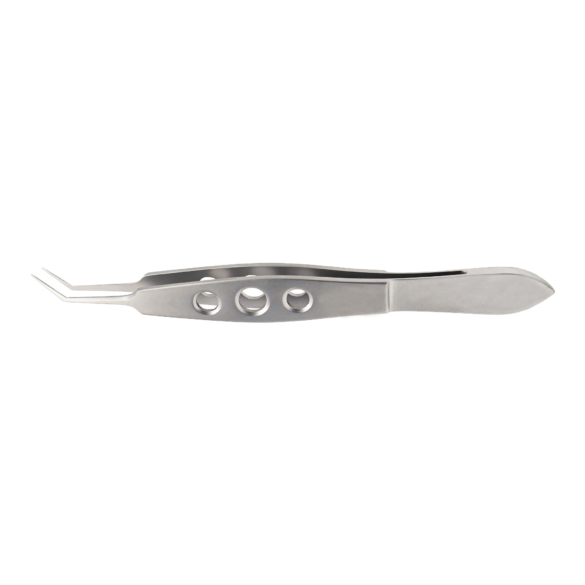 McPherson Lens Holding Ophthalmic forceps, 7.5mm long jaws, angled, very delicate, overall length 10.5cm